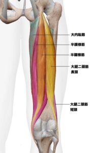 さらに、内側ハムストリングスの深層には「大内転筋」も走行しています。